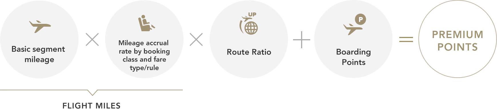 Unlike the Flight Miles you normally earn, Premium Points are calculated using an accumulation ratio for booking class and fare, a route ratio and Boarding Points. Enter your flight details in the Premium Points Simulation to calculate the Premium Points you will earn.