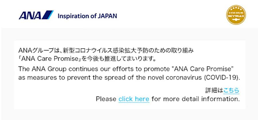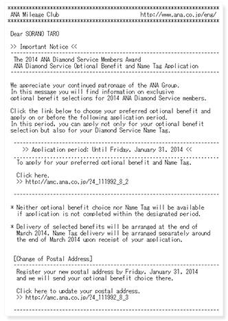 Notices worthy of ANA Mileage Club member attention include password reset, mileage redemption, and status update and so on