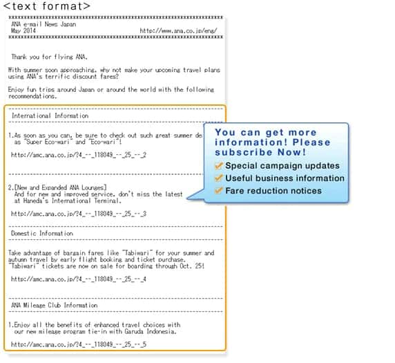 Notices like booking updates will be sent to those who have not yet joined ANA Mileage Club but have registered their e-mail addresses with us.