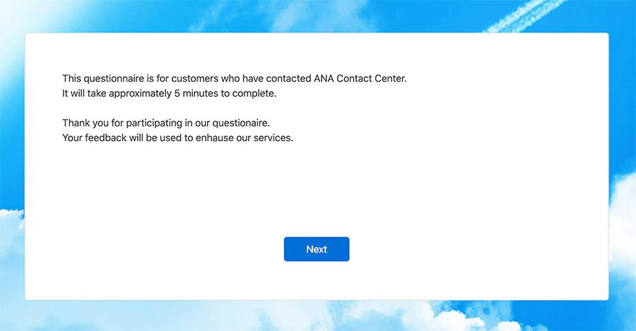 For the purpose of improving the quality of our services, we send survey invitation emails to customers who have called ANA to make an inquiry.