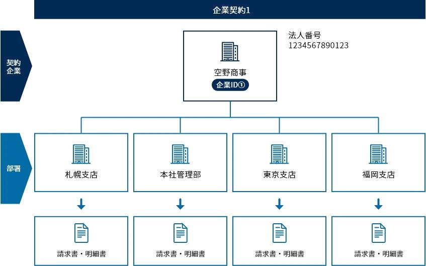 1企業契約単位のパーチェシングカードのみ、お申し込み時に、部署・支店別に組織IDを設定することで明細を分けることが可能です。