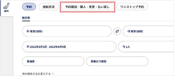 ANA Bizサイトにて購入済みの予約は、ANAウェブサイトからも検索できます。予約変更を伴う操作時は自動的にANA Bizサイトに遷移します。