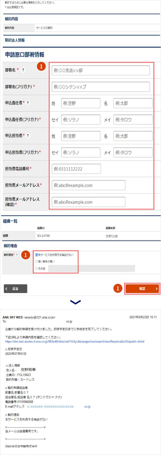 一部の組織、関連会社の利用を終了します。解約する組織、関連会社で使用しているカード情報のみが解約になります。
