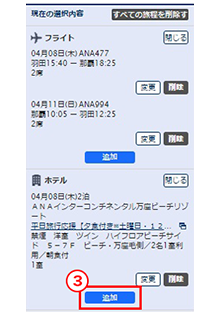 (3)ホテル欄の「追加」ボタンを押す