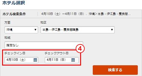 例)チェックイン:4/10 チェックアウト:4/11