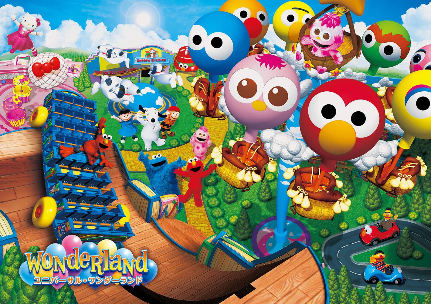 エルモ、スヌーピー、ハローキティなど、世界的に人気のキャラクターたちが住む街をコンセプトにしたファミリーエリア『ユニバーサル・ワンダーランド』。約3万㎡の一大エリアに、30以上ものエンターテイメントが集結!