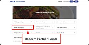 Log in via the ANA Mileage Club top page, select Using Miles from the Mileage Guide, and select Redeem Partner Points.