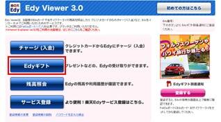 Set up the FeliCa NFC reader or PaSoRi card reader, then visit the Rakuten Edy website. Go to the Edy Viewer page and select Edyギフト (Edy Gift).