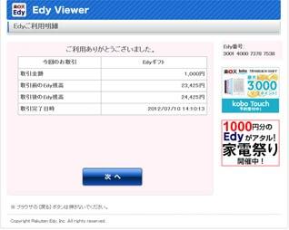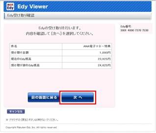 After confirming the Edy Gift amount to be collected, click 次へ (Next).