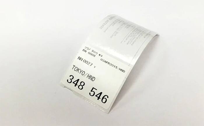 Receiving Baggage claim tag issued at a ANA counter