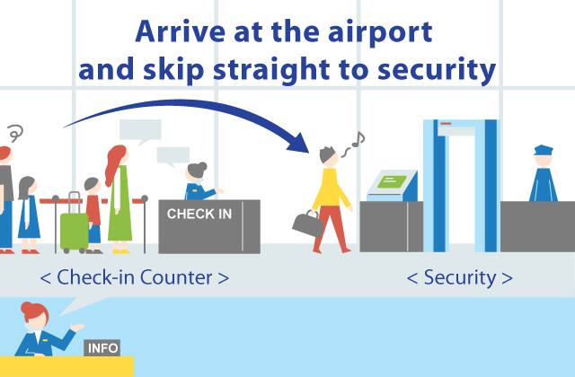 The SKiP service allows passengers who have completed their reservation, purchase, and seat reservation to skip the check-in counter and go straight to security.