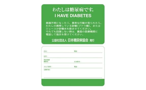Diabetic patient ID cards are issued by the Japan Association for Diabetes Education and Care.