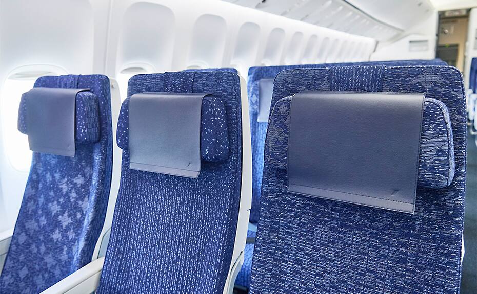 A spacious seat pitch of 34 inches. Relax at the seat with a 6-way adjustable headrest. You can also enjoy the latest movies and audio programs on the 13.3-inch touch-panel personal monitor, the largest available in any Economy Class cabin worldwide.