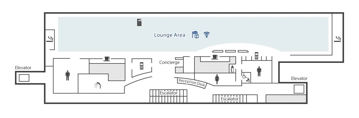 An enclosed counter is also available with direct access to the lounge (ANA SUITE CHECK-IN). The lounge offers a variety of conveniences so guests can spend their time in comfort. This includes a range of facilities to support those who need to work, a multi-purpose lavatory, a nursing room, and a diaper changing table.