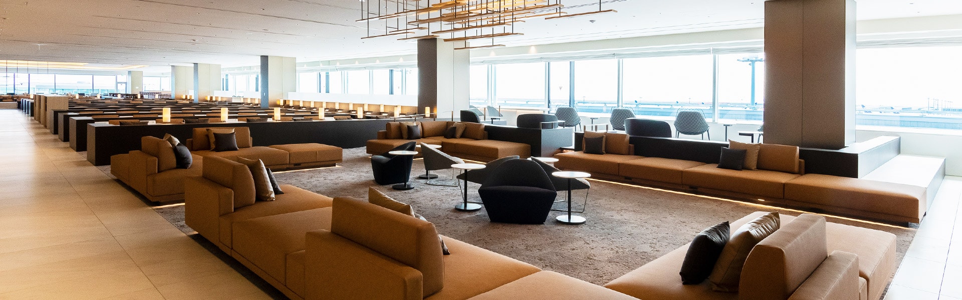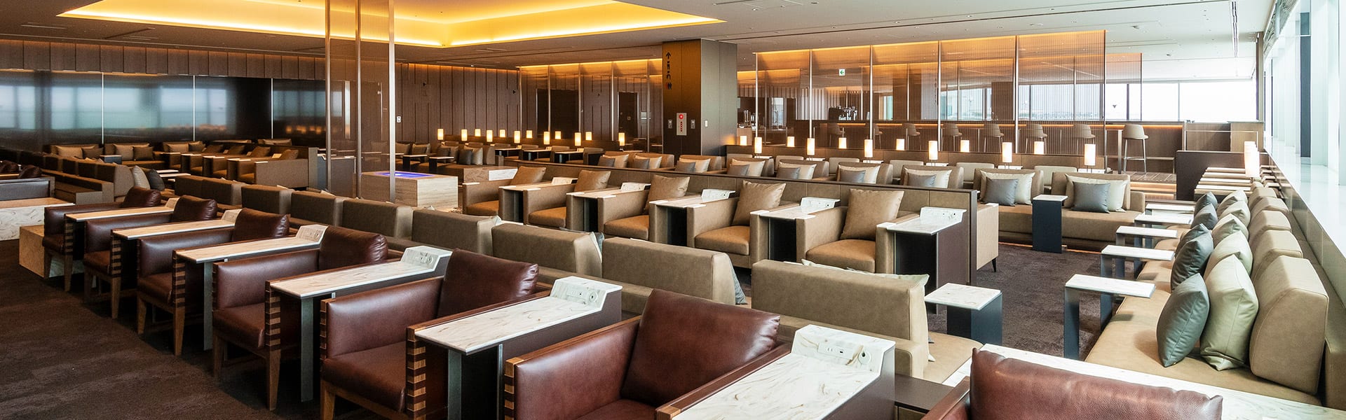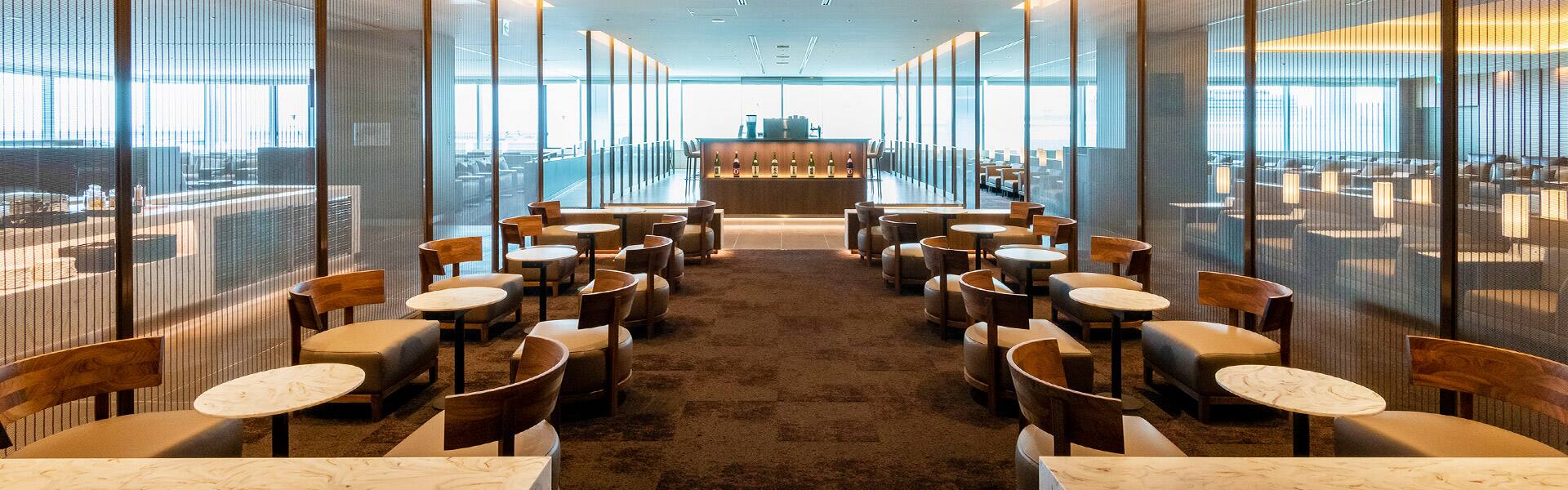 This lounge has been designed by the internationally renowned Japanese architect Kengo Kuma based on the concept of "Ichigo ichie" (treasure every encounter as if it were once in a lifetime). Its open, bright feel makes it the perfect place to relax upon arrival. It also comes fully equipped with shower rooms for guests to refresh themselves, and a footbath area looking out over the runway to the ocean beyond. There are also changing rooms and work booths so you can prepare yourself for any subsequent commitments.