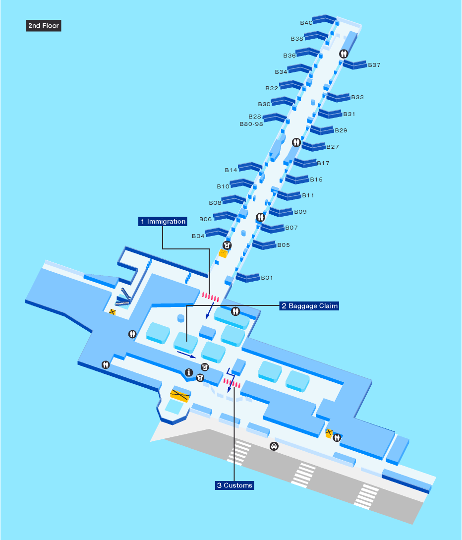 The lounge floor (4th floor) where the Diamond lounge is located can be reached by taking the escalator or elevator near Gates B04/B06 or the escalator near Gate B15.