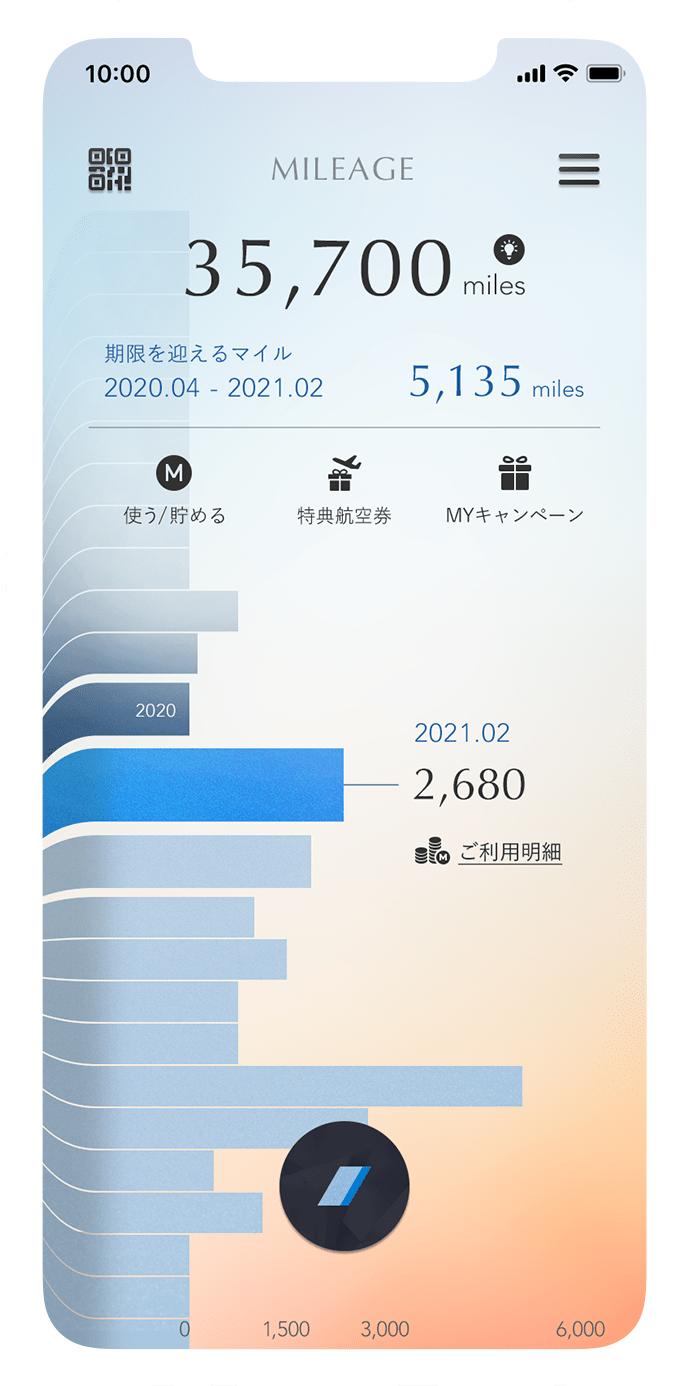 Any miles you earn through flights and everyday purchases (such as online shopping and restaurant reservations) will be displayed numerically and in graph form so that you can keep track.