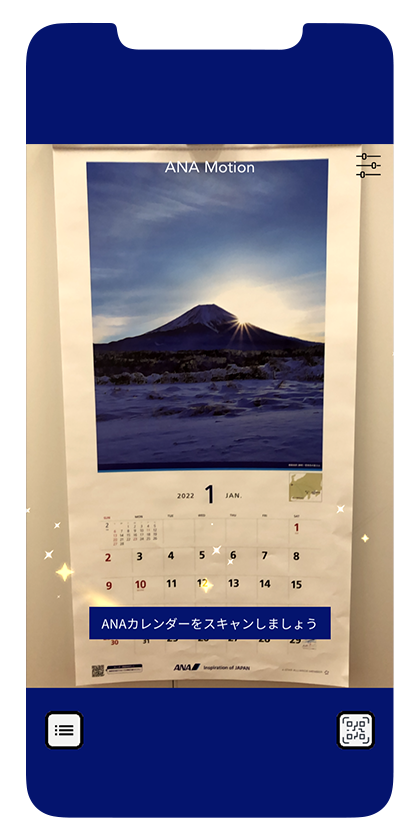 When you open the camera in ANA Motion (our dedicated AR app) and hold it over one of the still images in the 2022 edition of the ANA calendar Welcome Aboard, the image will come to life and provide information on our recommended tourist attractions and tours for the relevant region.