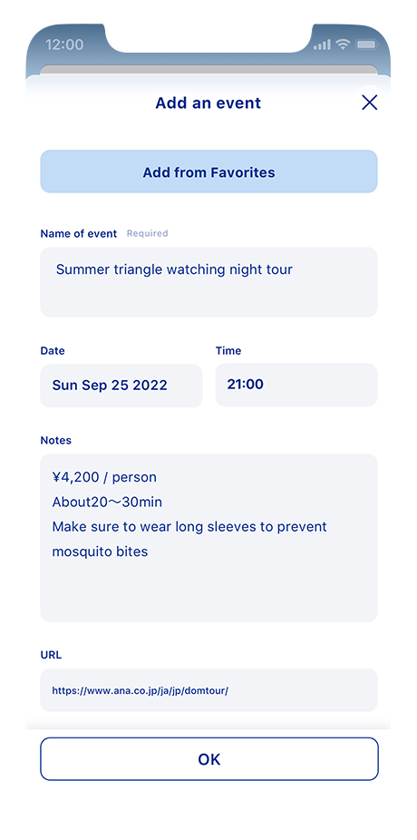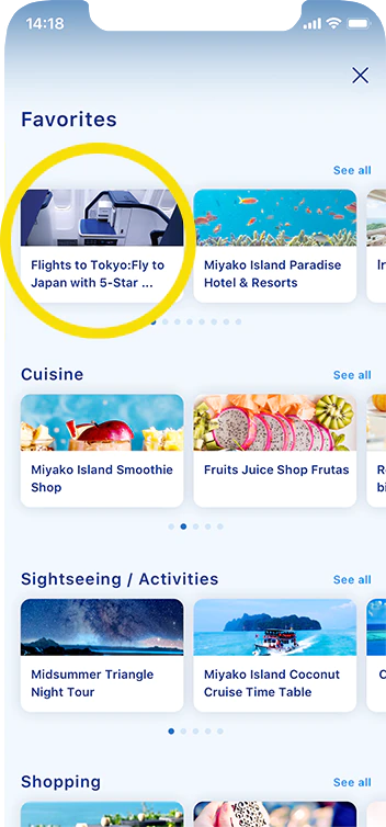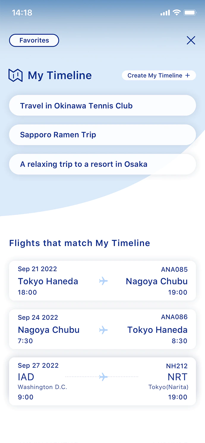 You can save the spots that interest you when browsing online into your favorites on the ANA app.