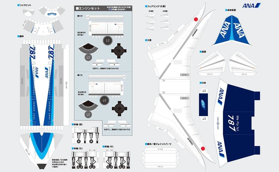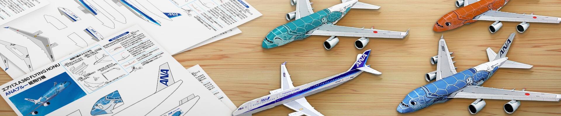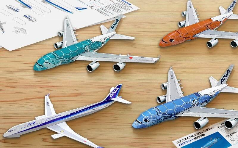 You can download templates for 3D paper airplanes, pop-up card, and aircraft of ANA from the past.