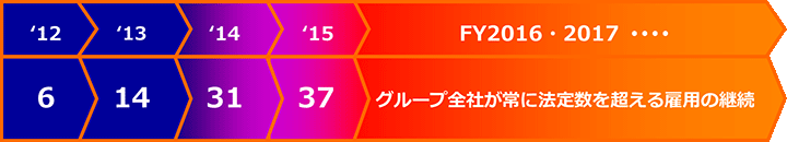 こうしたグループ全体の取り組みと併行して各社が積極的な採用に取り組み、2015年4月、障害者雇用促進法の対象のグループ全37社が法定雇用率2.0%を達成しました。