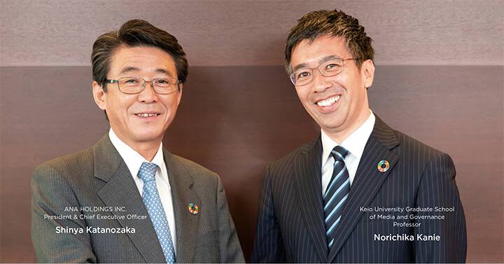We invited Professor Norichika Kanie from Keio University Graduate School of Media and Governance to talk with Shinya Katanozaka, president & CEO of ANA HOLDINGS INC, about the relationship of business activities and the SDGs, as well as expectations of the ANA Group. Prof. Kanie is one of the foremost authorities on the SDGs, participating in expert committees in Japan and around the world. He is also heavily involved in education and promotion of the SDGs.