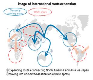 - ANA will also provide further convenience to both Japanese and overseas passengers through expansion and improvement of its international group network, and also strengthening partnerships with foreign airlines to cover currently un-served destinations.