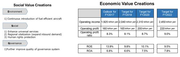 ANA will maintain profitability on the Japan domestic FSC service, which is the group's largest source of income, while also optimizing business portfolios with the aim of expanding revenue and income and achieving value creation targets across all other businesses.
