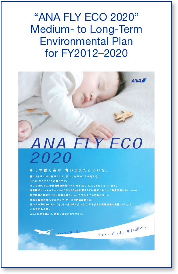 Aiming to become the world's leading environmental airline group, the ANA Group has pursued the ANA FLY ECO 2020 program, our medium- to long-term environmental plan from fiscal 2012 to fiscal 2020.