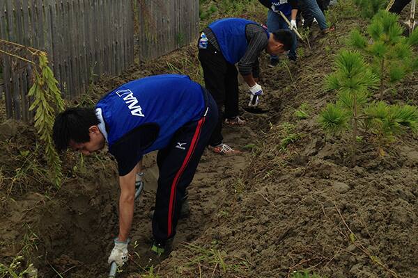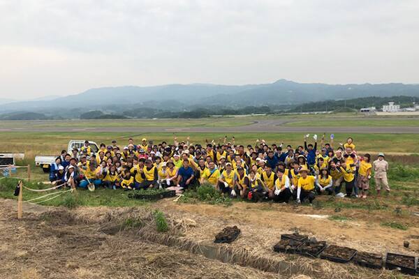 The tsunami caused by the Great East Japan Earthquake destroyed the coastal forest along the northeast cost of Japan. This coastal forest played an important role in the preservation of the local living environment, known as a disaster prevention forest to defend against flying sand and serve as a windbreak. As part of the ANA Group long-term participation in reconstruction activities, We have been supporting and participating in the OISCA coastal forest restoration 10-year plan project in Natori, Miyagi Prefecture since 2011. In June and September 2019, approximately 60 ANA Group employees participated in activities under the guidance of OISCA staff and local farmers, weeding and performing other tasks.