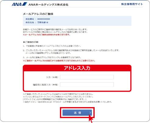 株主様のメールアドレスを入力し送信をクリック