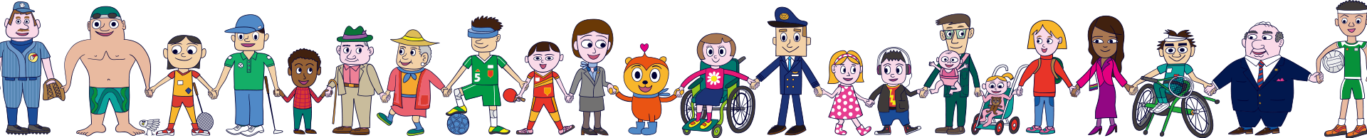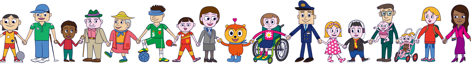 さまざまな人種・さまざまな年齢の人と共に、