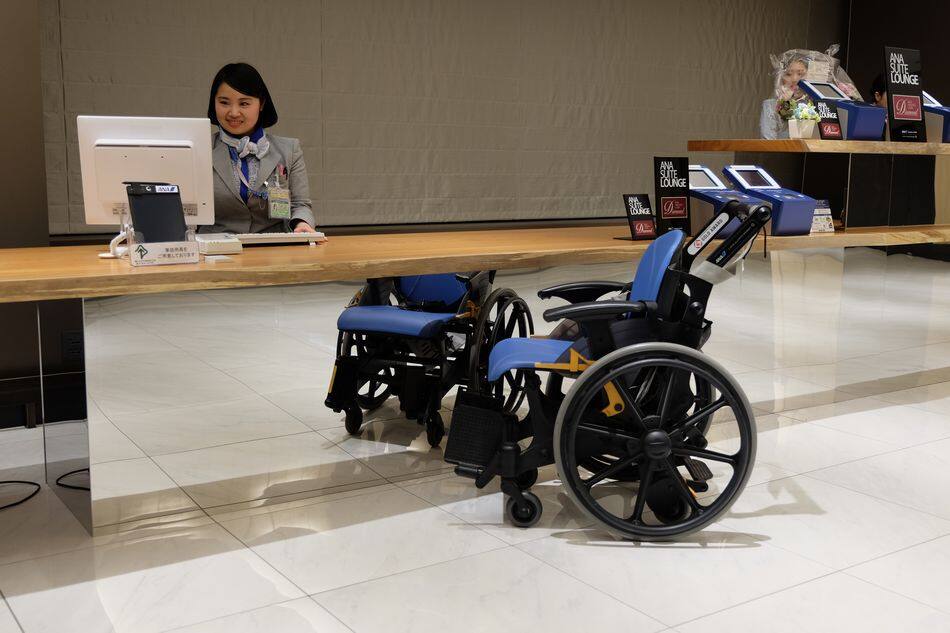 傾斜のあるスロープや長距離移動に便利で、お客様と係員にやさしい車いすです。全国の空港に設置していきます。