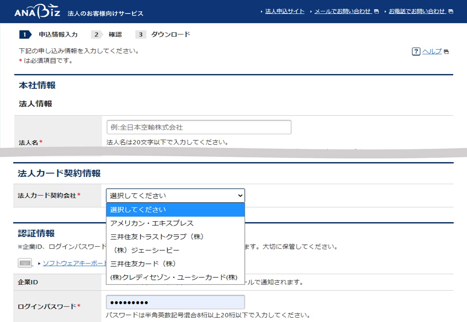 ANA Biz(法人カード)ページより申請