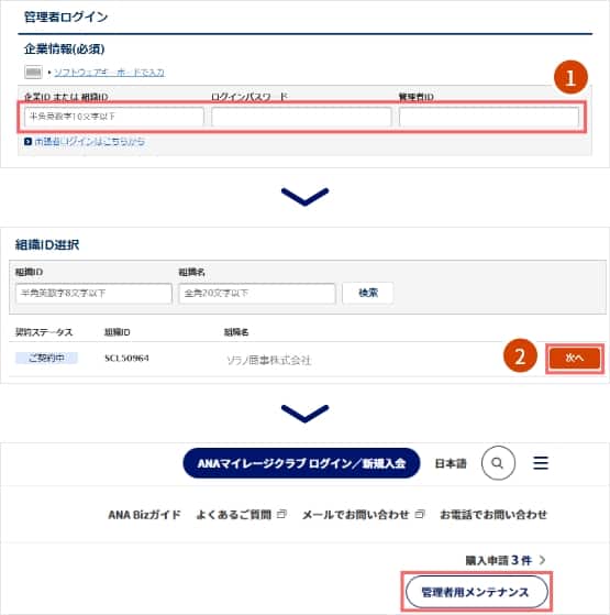 ANA Biz利用開始後、各種情報を登録してください。登録は即時反映します。