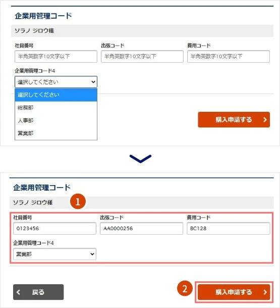 法人カードをご利用の企業様は「購入申請」の選択ができません。