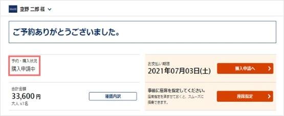 予約・購入状況が「未購入」から「購入申請中」にかわります。