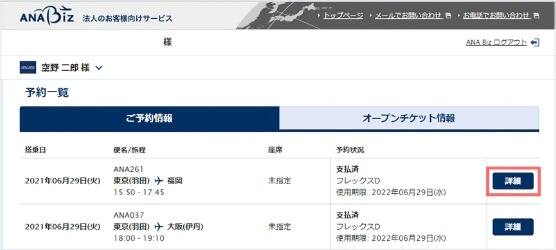 ANA Bizから取得した予約を検索し、内容を確認することができます。