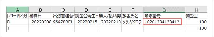 例3)ご利用日 2022年3月8日 請求額 ▲100円 請求番号=10201234123412