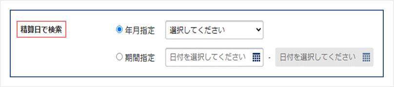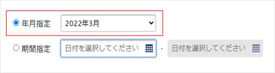 「年月指定」は1カ月単位、「期間指定は」1日単位