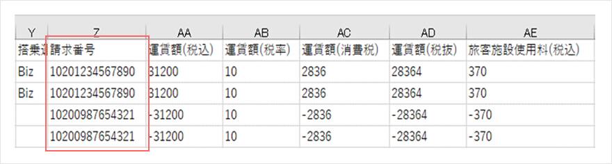 「購入/払い戻し日」と「請求番号」が合致しているデータで確認します。