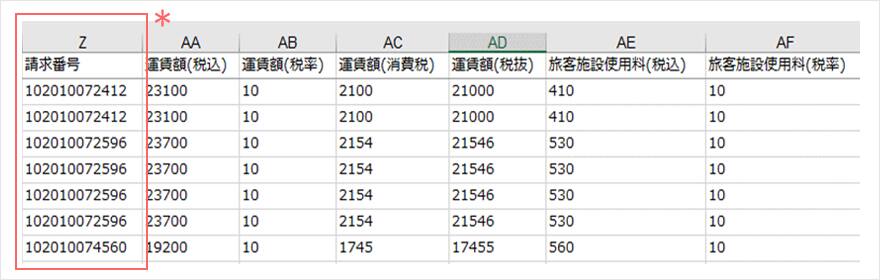 CSVファイルをそのままExcelで開くと、桁数の多い「請求番号」は正しく表示されません。