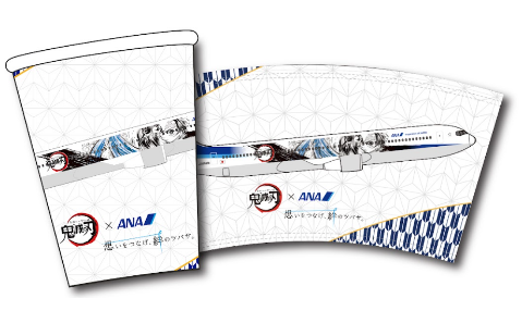 機内でのお食事やご休憩時のお飲み物は、鬼滅の刃×ANAの限定デザインの紙コップでドリンクサービスいたします。