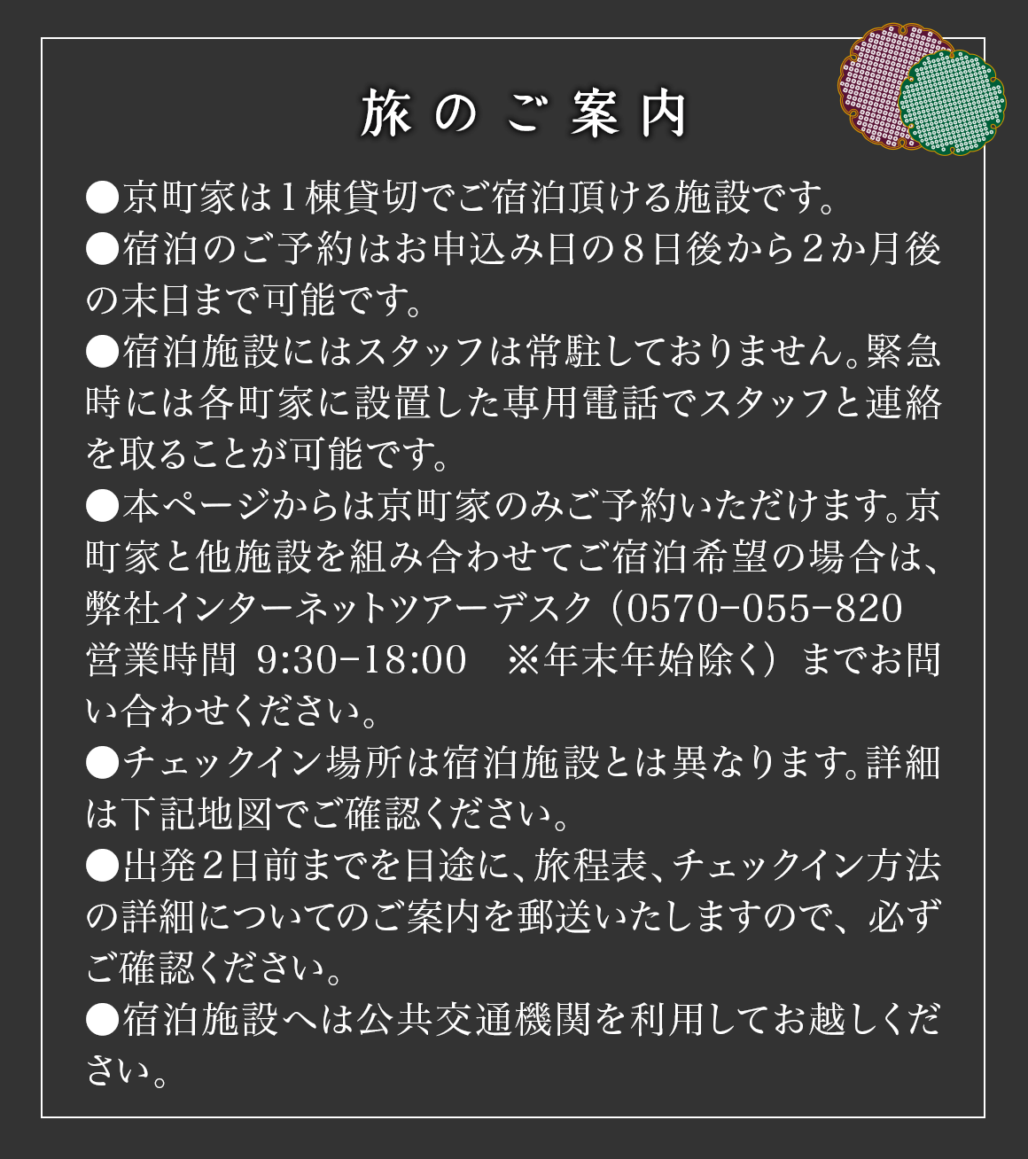 チェックイン場所:MACHIYA INNS & HOTELSチェックインカウンター