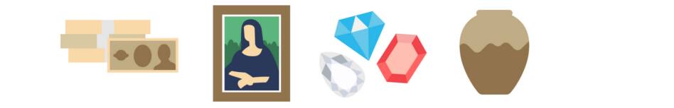 その他貴重品:書類・(電子)データ・旅券など旅行に必要な身分を証する文書・見本・カード類・金券・通帳・小切手・定期券・時計・形見