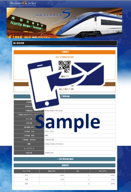 当サイトを経由して購入したスカイライナー券は列車および座席が指定されておりません。