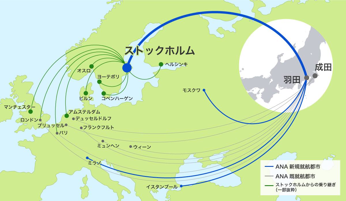 | NH221 | 東京(羽田)09:40 | ストックホルム13:00 |