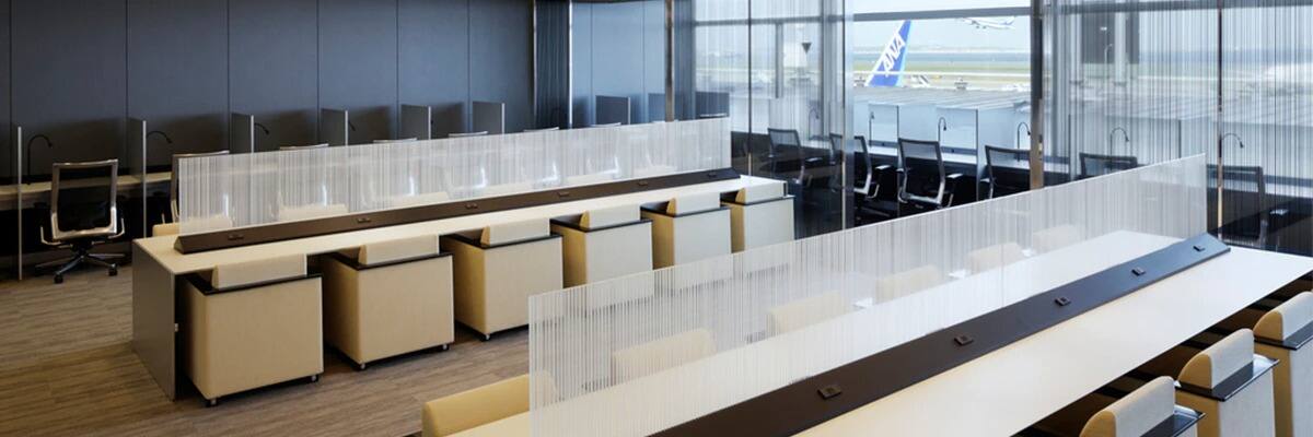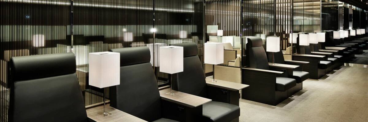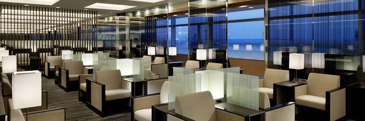 広々としたフロアと落ち着いたインテリアが演出する洗練された空間で、ご出発前のひとときをゆったりとおくつろぎください。