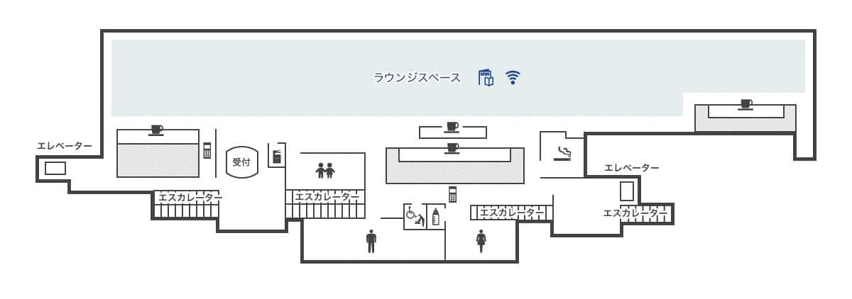 - 21:00以降の出発便をご利用のお客様は本館北ラウンジをご利用ください。