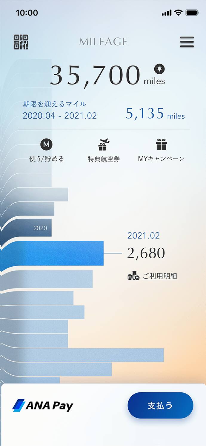 アプリ内では、マイルの残高や有効期限を確認いただけるほか、マイルが貯まる・使えるサービス情報満載。